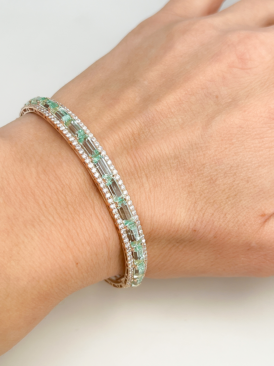 Браслет из золота с изумрудами природными и бриллиантами LAB