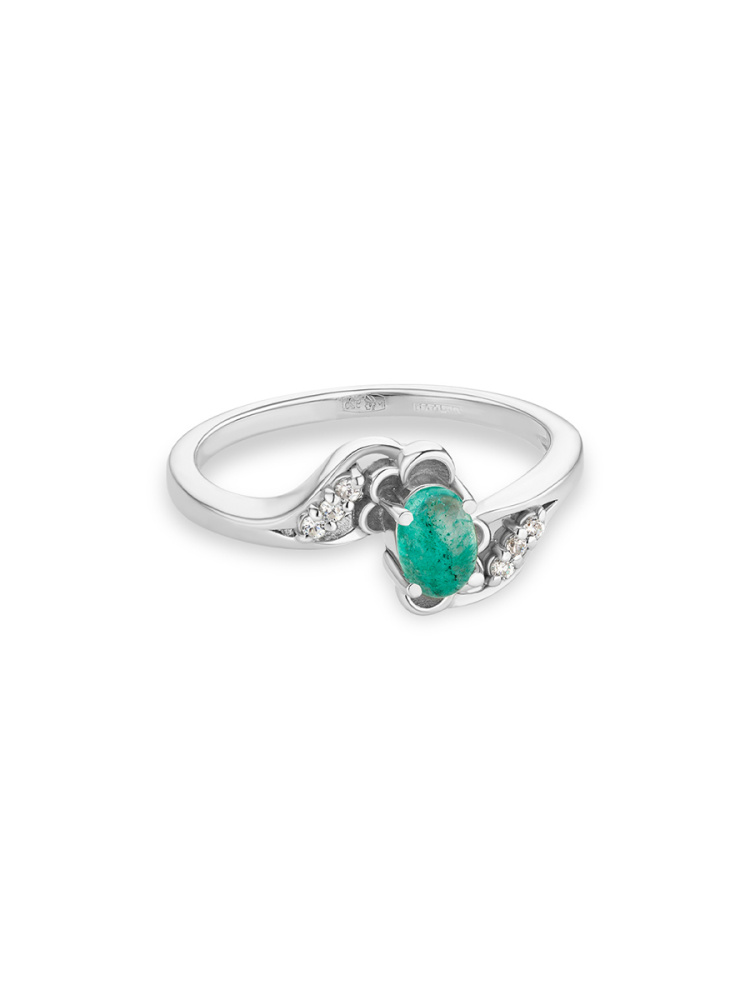Кольцо из серебра с изумрудом природным и фианитами
