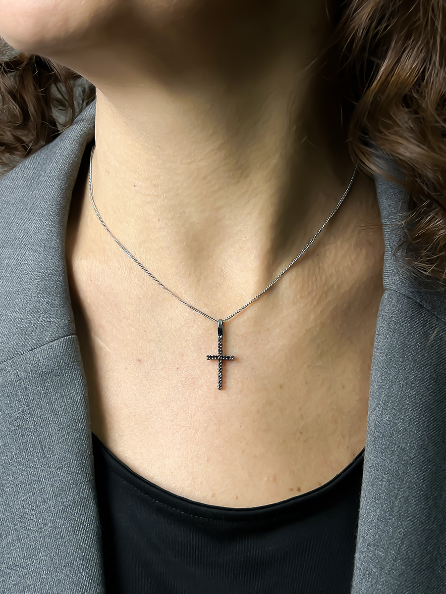 Крест из серебра с бриллиантами чёрными
