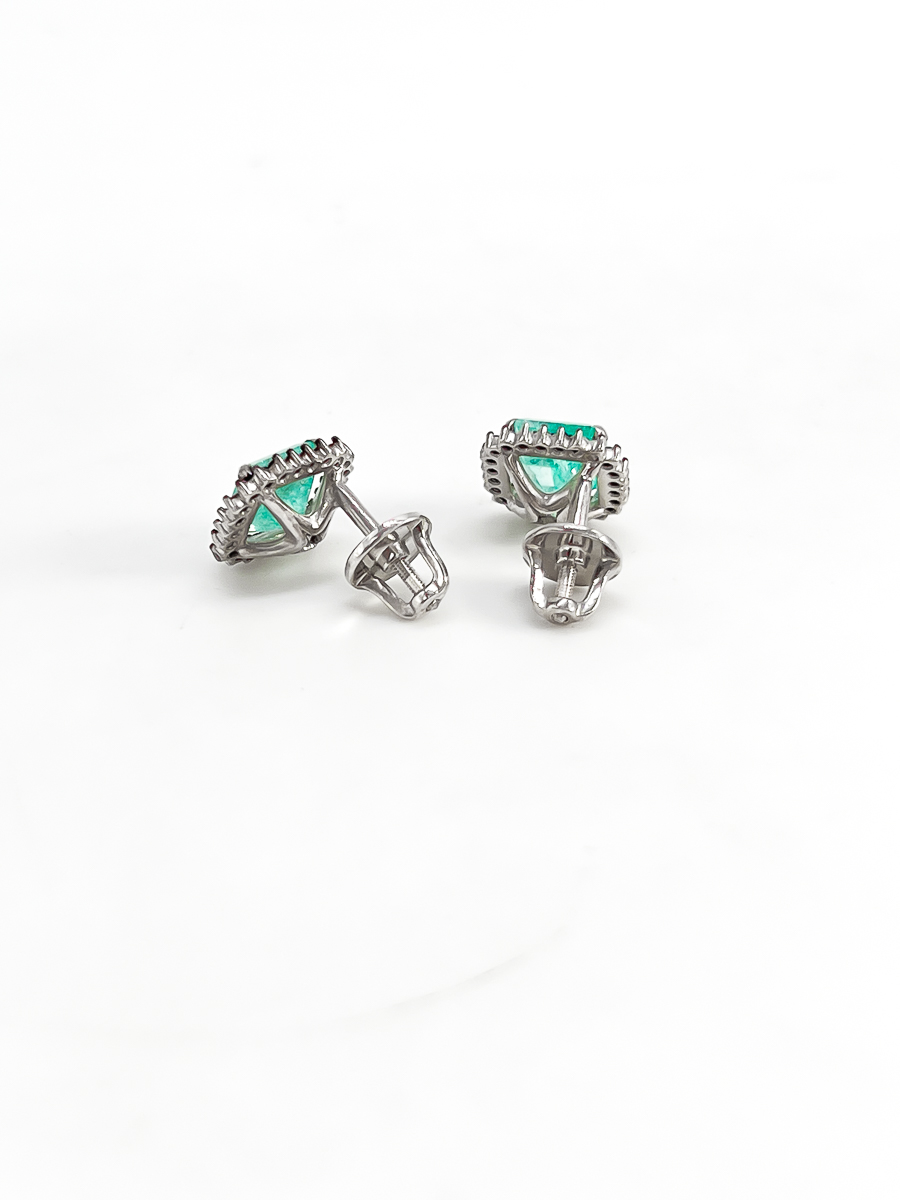 Серьги-пусеты из серебра с изумрудами природными и шпинелями