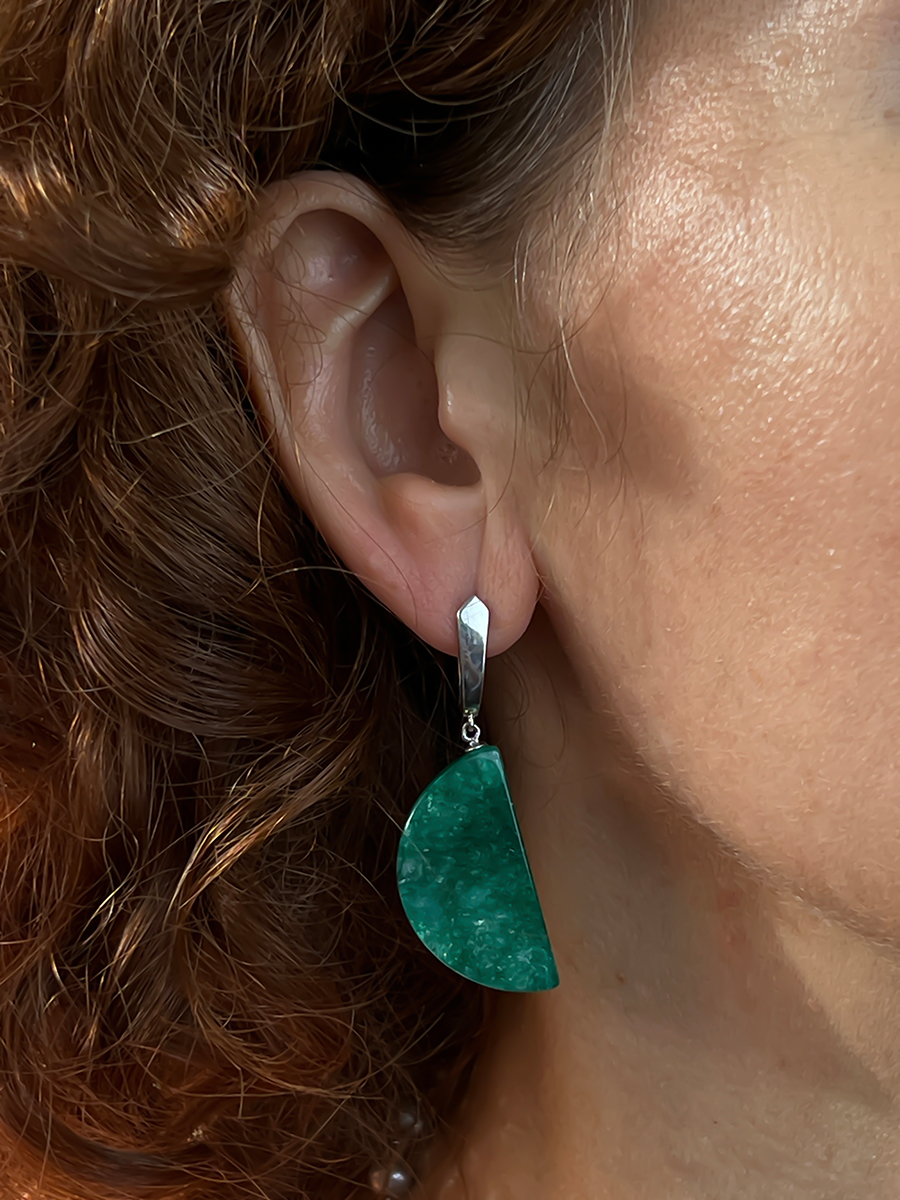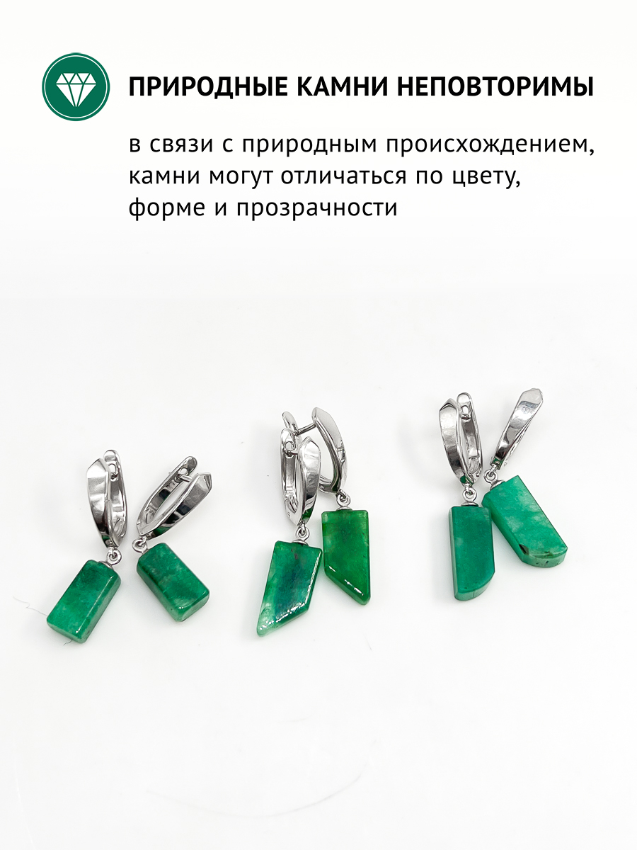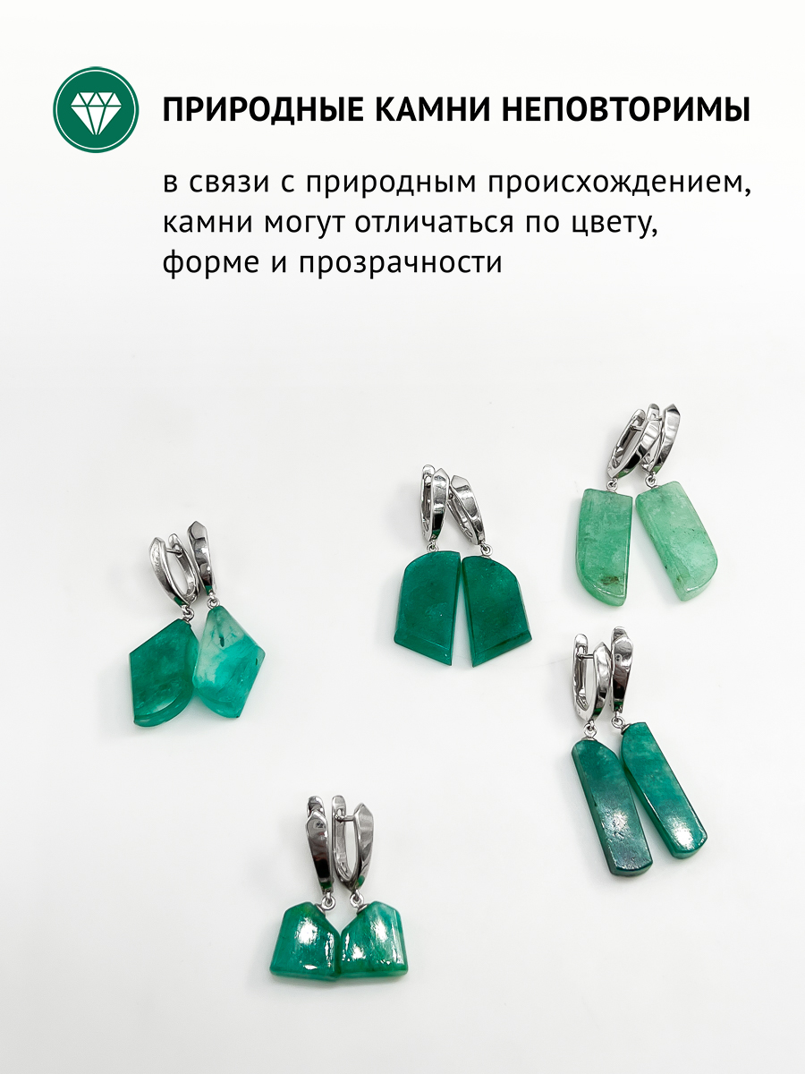 Это украшение - маленькая частичка природы и Ваш личный талисман, ведь в каждом природном камне кроется целительная сила Земли!Природный изумруд - символ дружбы, любви и гармонии, камень - "миротворец" отведёт от Вас негативные влияния и аккумулирует позитивную энергетику.Изумруд больше подходит людям, родившимся под знаками зодиака Лев, Весы и Водолей.Данное украшение станет идеальным подарком на годовщину изумрудной свадьбы - 55 лет в браке!Благодаря стандартному английскому замку серьги хорошо сядут на любую мочку.