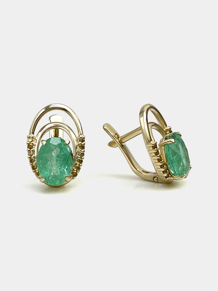 Серьги из золота с изумрудами природными
